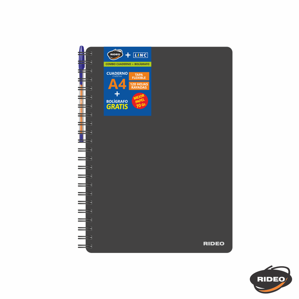 CUADERNO A4 - ECOBLACK- TAPA FLEXIBLE - CON ARCHIVO - CON BOLIGRAFO GRATIS