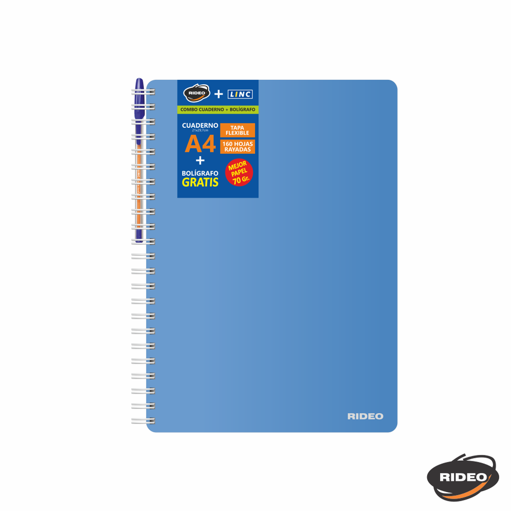 CUADERNO A4 - NEON - TAPA FLEXIBLE - CON ARCHIVO - CON BOLIGRAFO GRATIS