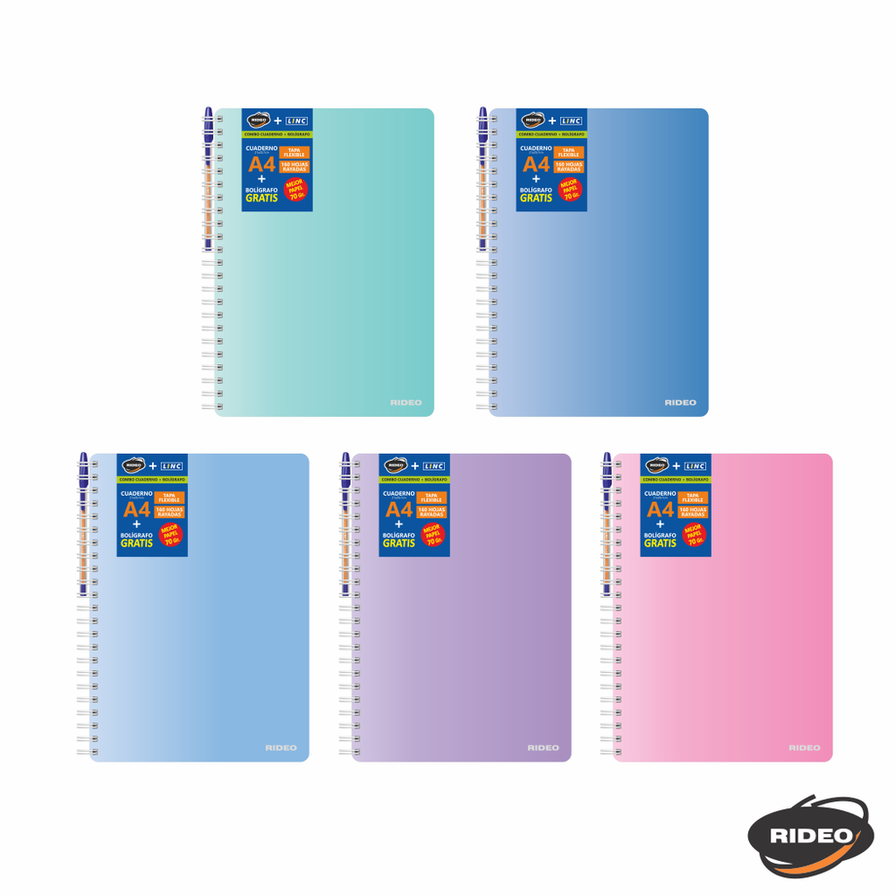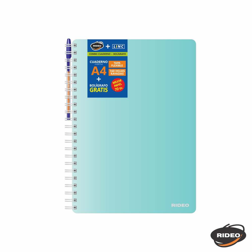 CUADERNO A4 - PERLADO - TAPA FLEXIBLE - CON ARCHIVO - CON BOLIGRAFO GRATIS