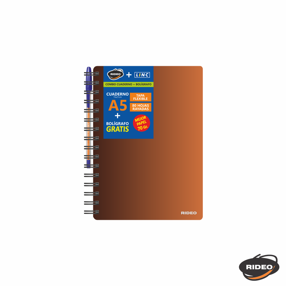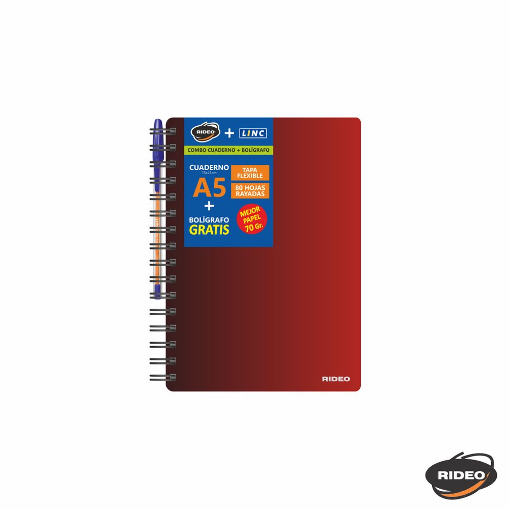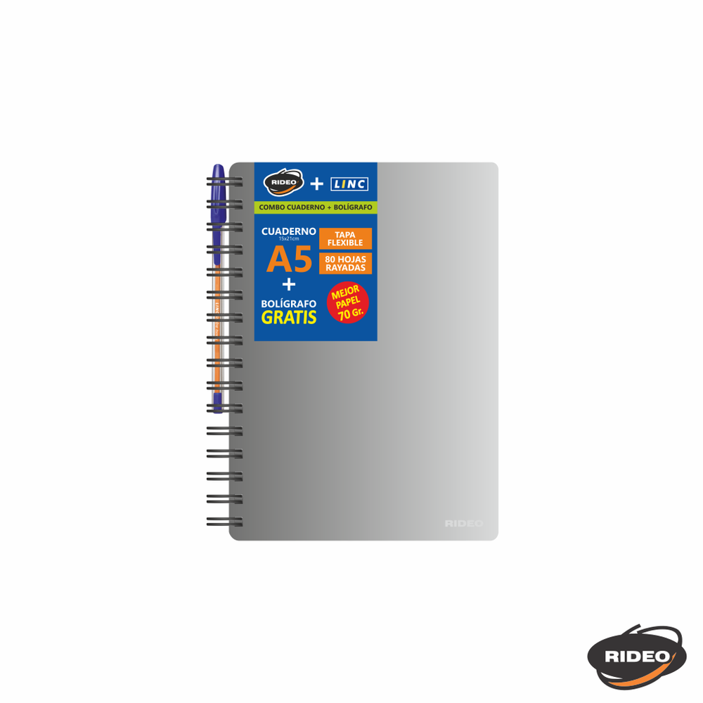 CUADERNO A5 - METAL - TAPA FLEXIBLE - CON BOLIGRAFO GRATIS