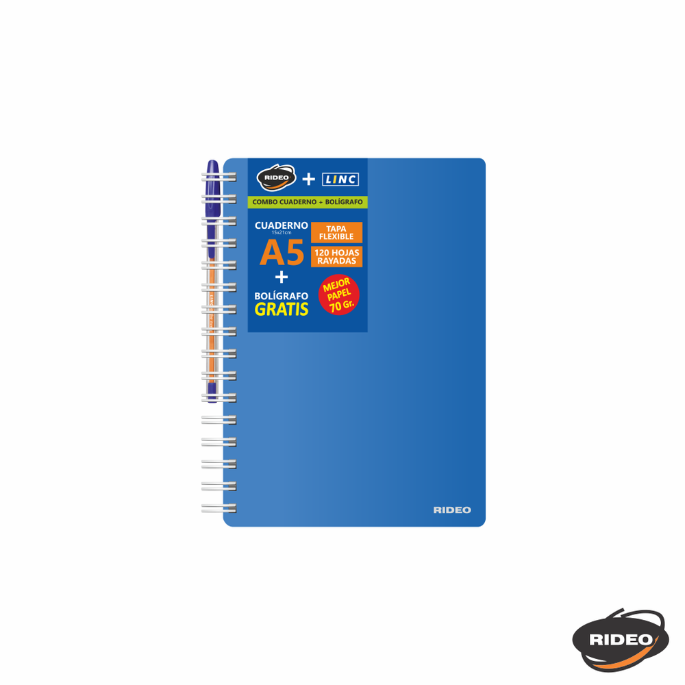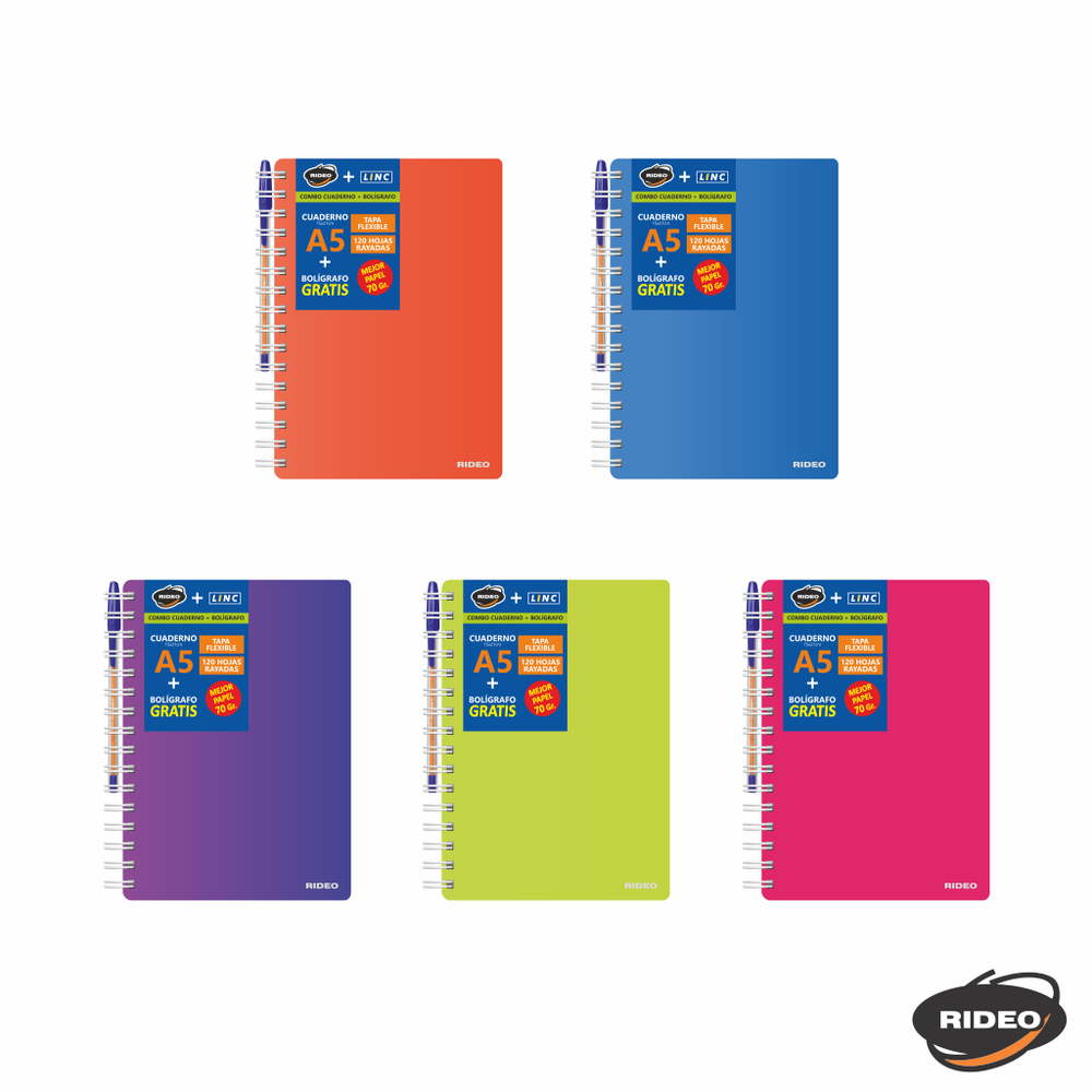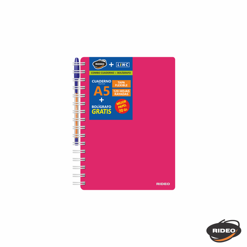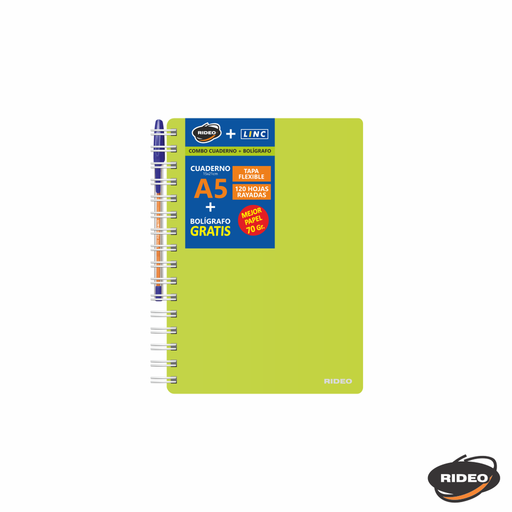 CUADERNO A5 - NEON - TAPA FLEXIBLE - CON BOLIGRAFO GRATIS