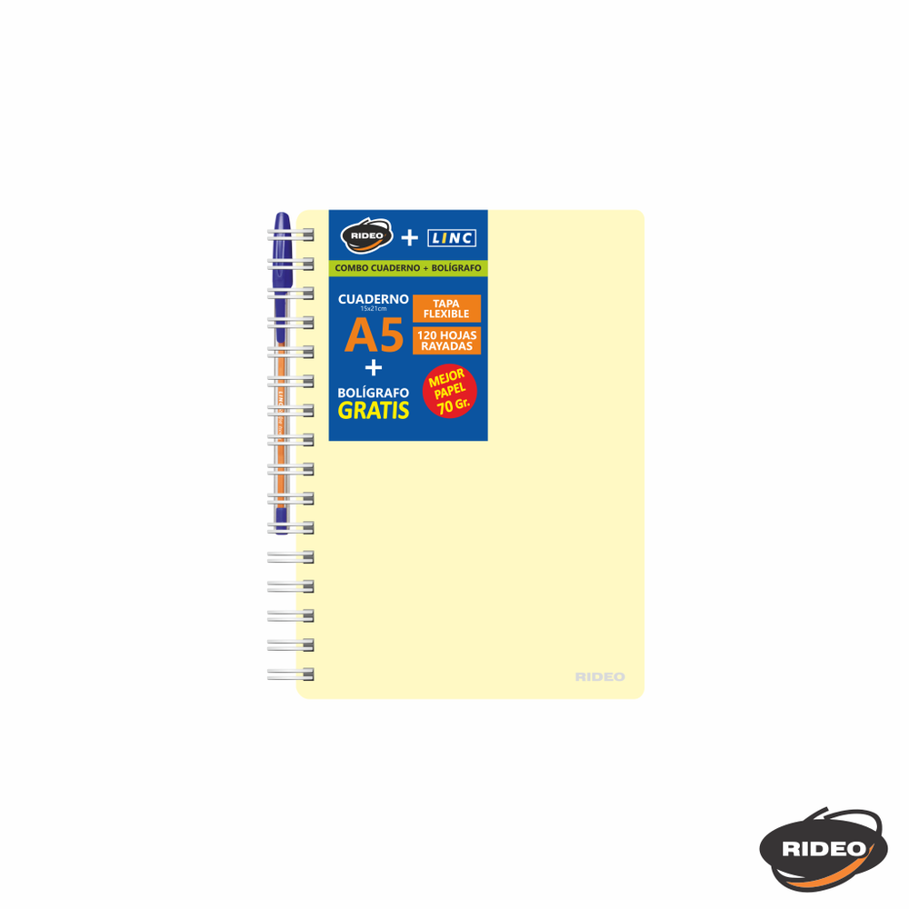 CUADERNO A5 - FRESH - TAPA FLEXIBLE - CON BOLIGRAFO GRATIS